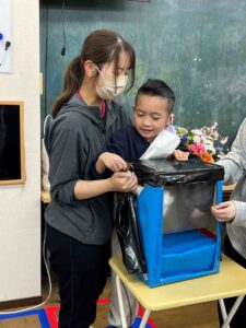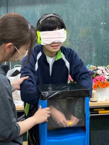 さわってすぐに当ててる児童や色まで当てる児童もいました