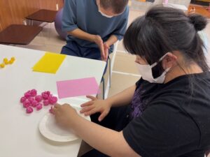 丁寧にお気に入りのカラーのお花紙を貼っていきます。