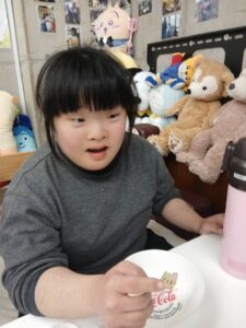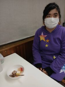 お菓子が当たる抽選会を行い、みんなでケーキを食べました(*^-^*)