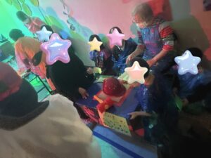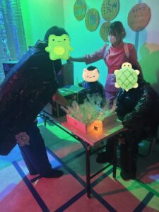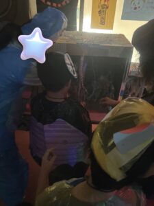 お菓子釣り・ひもくじ・叩いてかぶっつじゃんけんぽん・箱の中身はなんだろな・紙コップクラッカーの5ブースを作りました。